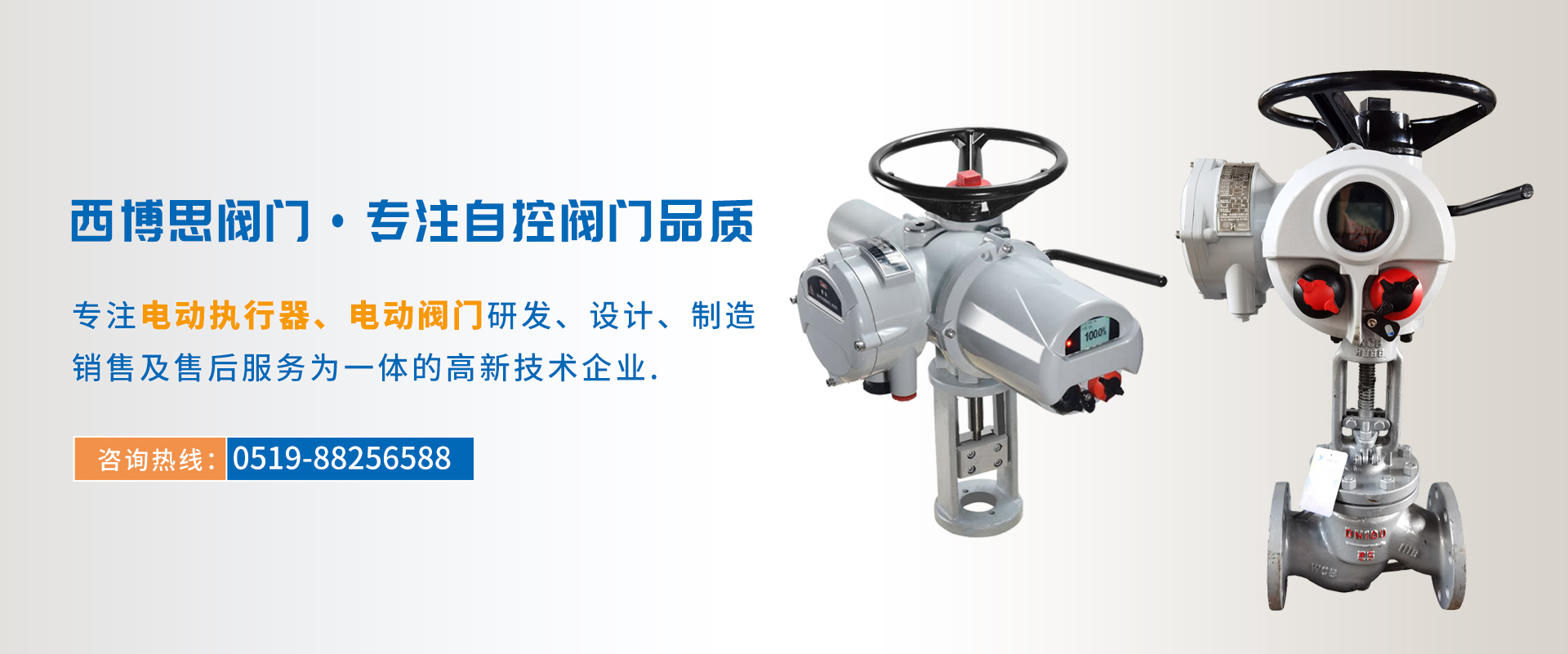 江蘇西博思閥門科技有限公司是一家專業從事各類電動執行器,電動閥門集研發、生產、銷售、服務于一體的技術型企業。產品功能齊全、性能可靠、控制系統先進、使用維護方便,被廣泛應用于電力、冶金、石油、煤炭、化工、造紙、自來水、污水處理、 物聯網農田灌溉等。產品質量穩定可靠,受到廣大用戶的普遍贊譽。